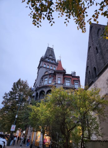 当我们的大巴驶上一座大桥进入布拉格时就被其不同于一般国家的地理位置震惊到,漂亮如画般的布拉格竟在脚下, 而我们就像坐在缆车上俯瞰整个城市。因为大桥周围用铁网围着,无法拍摄, 但布拉格的美第一眼就被震惊到,以红瓦为主的建筑物让布拉格城明艳鲜亮, 尽收眼底。