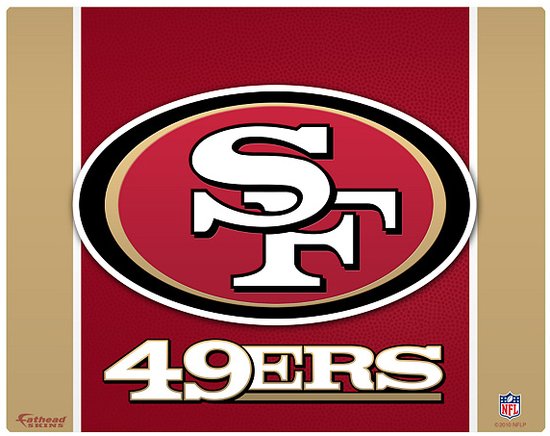 旧金山49人队的名称就是这么来的。其实直译成49人队并没有把背后的历史背景显示出来,台湾把它翻作淘金者队应该更妥贴些。你看该队的logo有金色的元素。图中的SF是旧金山的英文缩写。