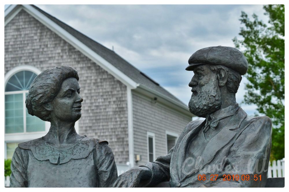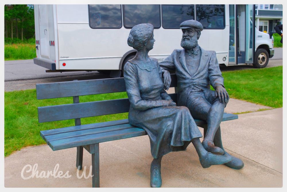 这里是电话的发明人亚历山大-贝尔 的家乡,他们夫妇的雕像: