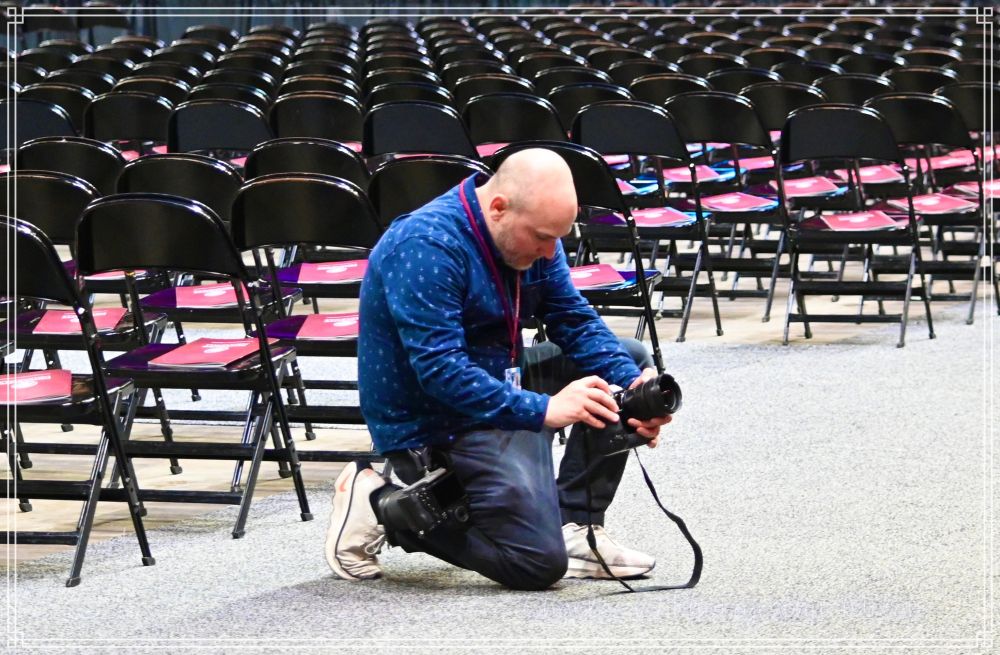 入场前, 摄影师开始进入状态, 乐队已开始 准备暖场: