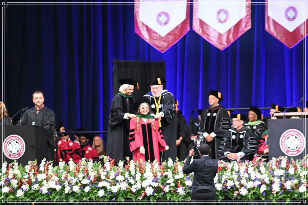 4. 学位授予( Conferral of Degrees):院长或其他官员正式授予MD学位,通常要求毕业生全体起立接受表彰。多数学校会逐一宣读毕业生的名字,毕业生走上台领取毕业证书或象征性的证书封套。