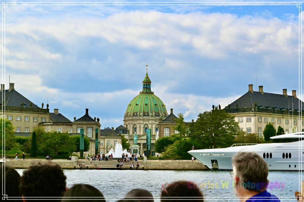 不久就到了古老的阿美琳堡宫(Amalienborg Palace)导游补充道:“这里是丹麦王室的住所,卫兵每天的仪式都吸引无数游客。”我感受到这座城市在传统与现代之间游刃有余的平衡。,四座对称的宫殿环绕着皇宫广场,喷泉与国王雕像交相辉映,背后那座绿色穹顶的腓特烈教堂(Frederik’s Church)犹如一颗巨大的海绿色珍珠。