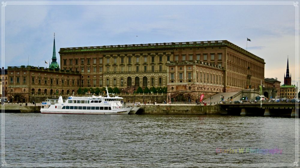 在游轮上看到的第一眼是老城(Gamla Stan)。游船先沿着斯特罗姆河(Strömmen)缓缓前行,左手边就是雄伟的瑞典皇宫或王宫,游船贴着王宫(Kungliga slottet)边缘掠过,这座宫殿是巨大的巴洛克风格建筑,紧挨着码头,气势恢宏。它曾是瑞典王室的居所,如今依旧是皇家举行仪式的舞台。
