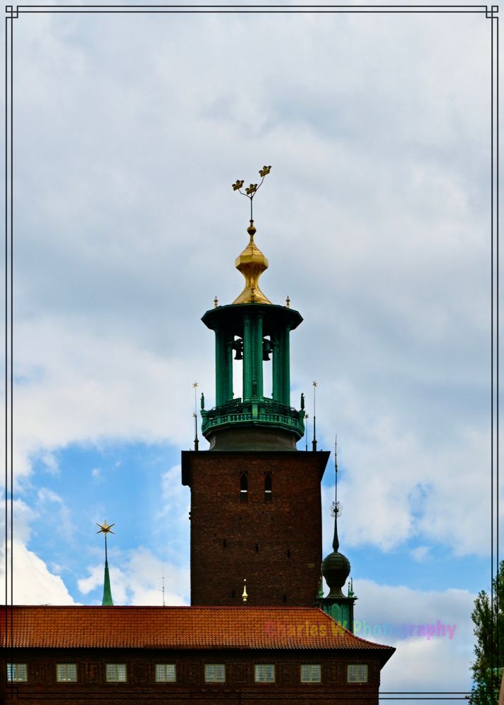 游船转过斯德哥尔摩市中心水域,便向西驶入 梅拉伦湖(Mälaren)入口,这时一个更为开阔的海湾。远远能看到斯德哥尔摩市政厅(Stadshuset)高耸的尖顶,红砖与绿铜屋顶相映,塔顶的三皇冠在白云蓝天下闪闪发亮。正是在这里,诺贝尔奖庆典晚宴每年都会举行,还有几个月,又要开始今年的颁奖与庆典宴会了。