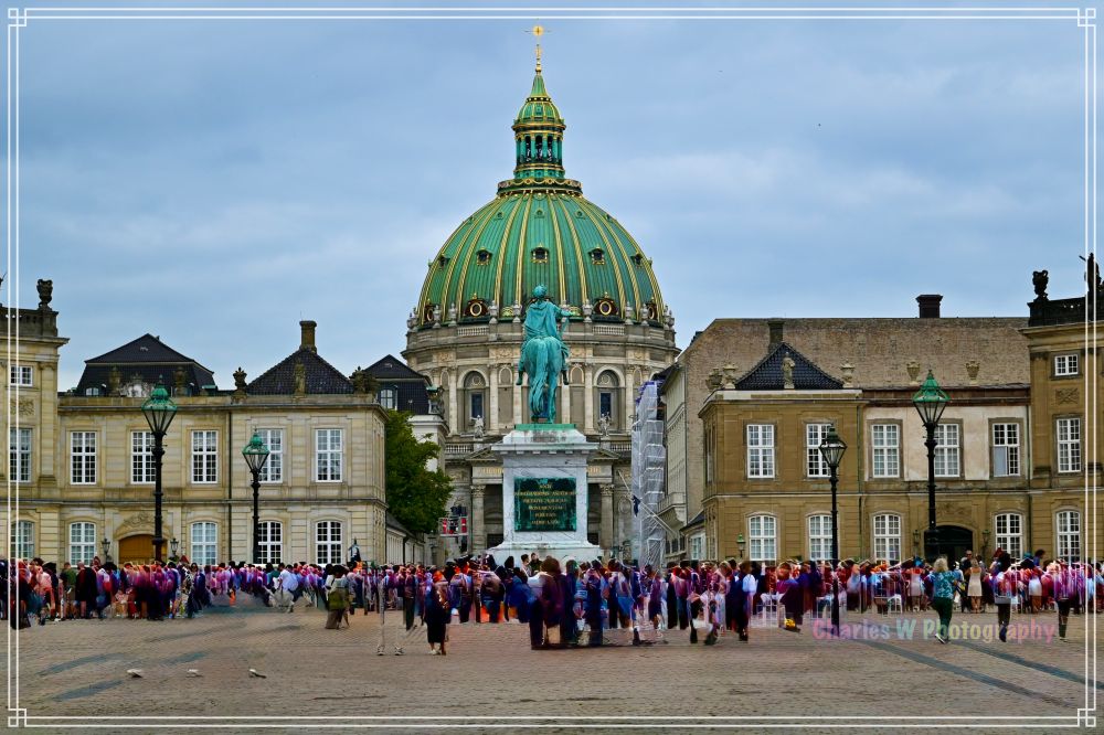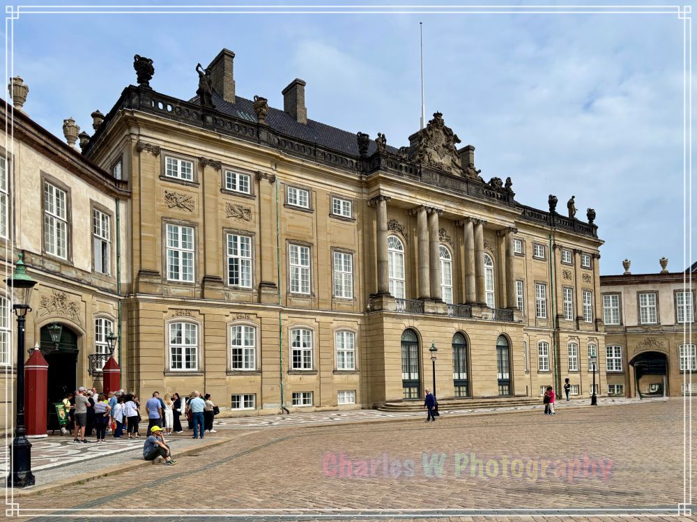在欧洲旅行,每个国家的王室都想要看看,今年夏天,我们终于有机会来到丹麦首都哥本哈根,亲身参观了著名的阿美琳堡宫(Amalienborg Palace,也称阿玛琳堡王宫)。这座宫殿是丹麦王室的冬季官邸,1794年开始启用,宫殿以索菲·阿玛丽王后(Queen Sophie Amalie)的名字命名,阿玛丽是17世纪的丹麦王后。宫殿群由四个对称的罗可可式建筑组成,环绕着一个八角形的广场。它不仅是丹麦王室的象征,还融合了历史、文化和日常生活。这次参观包括了外部漫步、内部探索,以及观看卫兵换岗仪式。