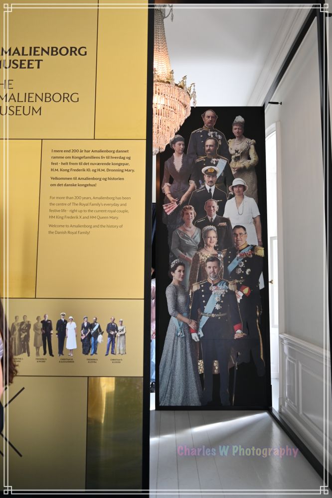 阿美林堡宫内部并非全部对外开放,只有克里斯蒂安八世宫(也称阿马林堡博物馆)允许游客进入。我买了门票(大约150丹麦克朗),存了重物,开始了内部参观。博物馆展示了从19世纪至今丹麦的王室历史,包括家具、肖像画、瓷器和服饰。