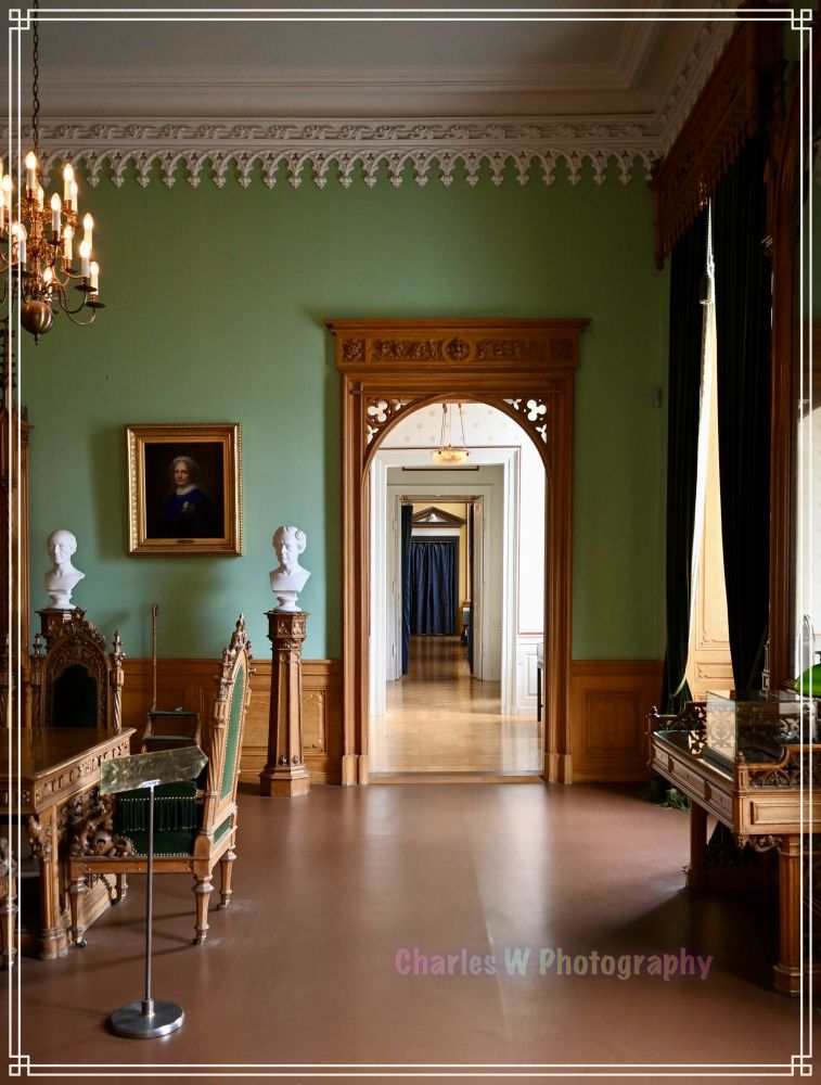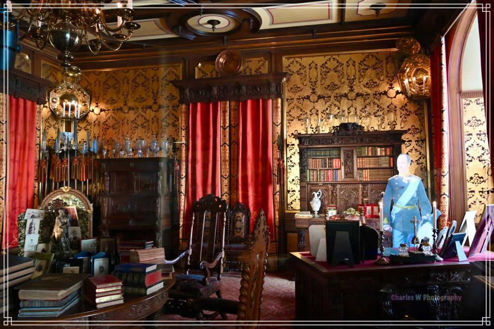 一进入大厅,就见华丽的楼梯和水晶吊灯。每个房间都像时间胶囊:维多利亚时代的客厅里摆放着精美的沙发和壁炉,墙上挂满王室成员的油画;