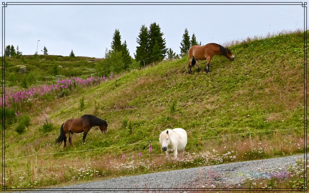 2025年7月31日,我们在弗莱姆与奥斯陆之间的山上酒店住了一晚,这酒店周围的风景很好,旁边有马场,散步时就近距离与马为友。