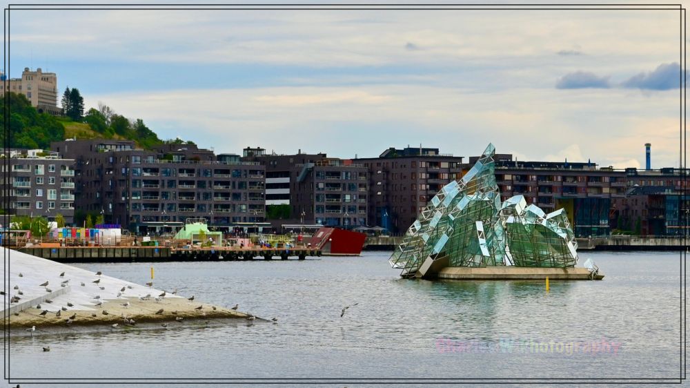 走出歌剧院,在一侧的水面上,可以看到一座奇特的漂浮雕塑—《She Lies》(由艺术家 Monica Bonvicini 创作)。它由玻璃与钢材组成,像一块断裂的冰山,随着风和潮汐缓缓旋转。与歌剧院本体相映成趣,诉说人与自然的关系。