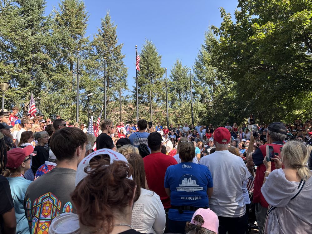 最令人动容的,是当大家齐声合唱《Amazing Grace》时。那一刻,数百人手拉手,泪水在阳光下闪烁。没有骚乱,没有对抗,只有纯粹的哀悼与团结。 一位中年男子是Charlie的长期支持者, 说到:“这个纪念不只是缅怀,更是承诺。我们要延续他的使命——让美国重回伟大。” 远处,孩子们在草坪上挥舞小旗帜,象征着新一代的希望。整个活动持续了近三个小时,结束时,大家自发围成圈,祈祷Charlie的妻子Erika和两个年幼的孩子能坚强面对。