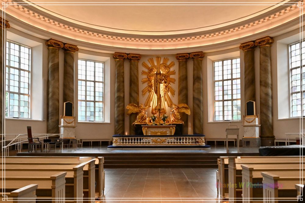 其庄严而简约的北欧风格让人忍不住放慢脚步。日光透过高窗洒落在木质长椅上,整个空间显得格外静谧,仿佛时间在此处被按下了暂停键。