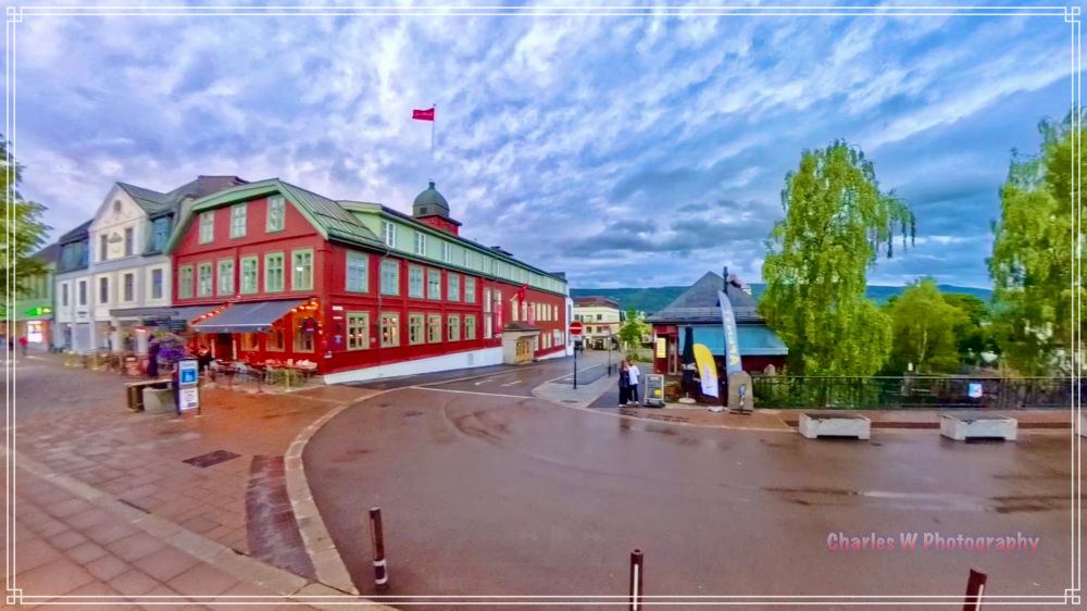 傍晚时分,巴士终于抵达了利勒哈默尔。这个因冬奥会而扬名的小镇,安静地依偎在米约萨湖畔。街道整洁而宁静,彩色木屋与鲜花相映成趣,透露着浓郁的北欧风情。夏季的利勒哈默尔少了冬奥赛场上的喧嚣,却多了一份宁静闲适, 偶尔看见几位行人走过和几部车辆掠过。夜色渐渐笼罩时,小镇在湖光映衬下显得格外安详,仿佛时间也在这里放慢了脚步。