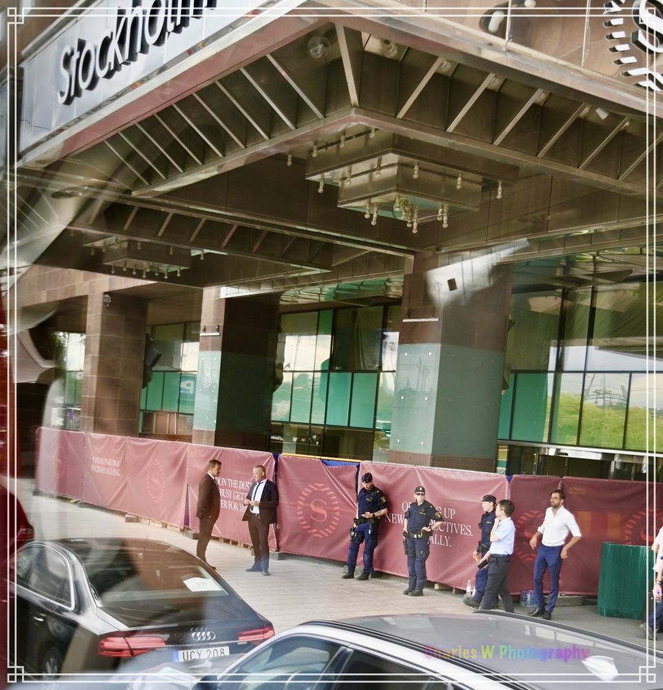 出来时遇见堵车,结果发现今天是两大国之间在斯德哥尔摩进行贸易谈判,所以警车开道,加强了警力。而美丽国代表团就下塌在Grand Hotel。