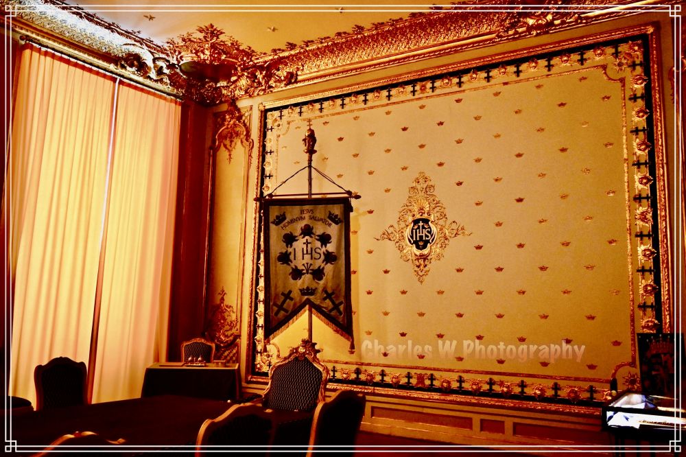 在瑞典皇宫内, 经常看到IHS字样,IHS 指的是基督的希腊字母组合,市耶稣基督的名字。它源自耶稣的希腊名字(ΙΗΣΟΥΣ,读作“IHΣOUS”)的前三个字母,其中希腊字母 eta (Η) 在拉丁文中被转写为“H”。这个符号在瑞典最高皇家骑士团——塞拉芬勋章(Kungliga Serafimerorden)的徽章中显著出现,该勋章由国王弗雷德里克一世于1748年创立。