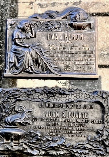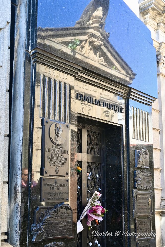Eva Perón的娘家姓氏是Duarte(父亲Juan Duarte,母亲Juana Ibarguren),她结婚后才改姓Perón。因此,这个家族墓以她的娘家姓氏Duarte命名,主要安葬她的娘家亲属,包括她的父亲、母亲和其他家人。Eva本人的遗体经过多次周折后,也最终安葬于此(深埋地下以防盗尸)。