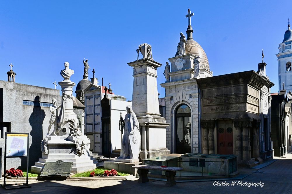 雷科莱塔公墓位于布宜诺斯艾利斯市中心偏北的雷科莱塔(Recoleta)区,始建于1822 年,是阿根廷最著名、也最具象征意义的公墓。它不仅是一处安葬之地,更是一座浓缩了阿根廷国家历史的露天博物馆。两百年来,阿根廷的总统、将军、贵族与文化精英大多长眠于此,墓碑上的姓氏,几乎构成了一部无声的国家史,常被称为“阿根廷的先贤殿”, 或直白地说,是有钱有权人的墓地, 或更简单地说:贵人之墓园。