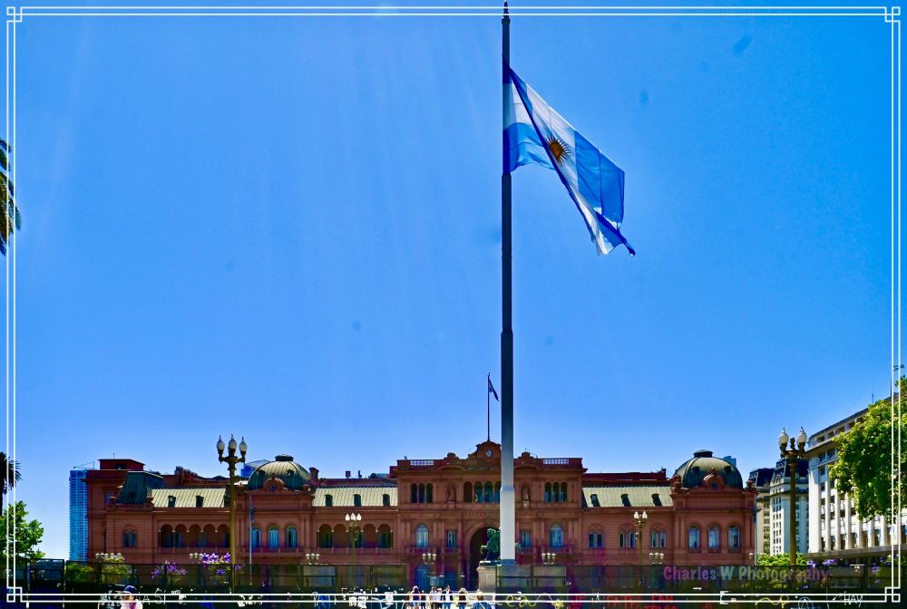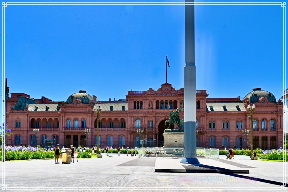 广场东侧是粉红宫(或称玫瑰宫,Casa Rosada),总统府那独特的粉色外墙在阳光下格外醒目。