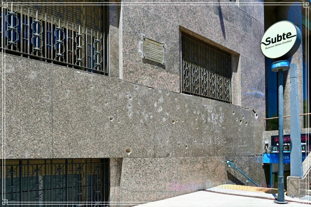 经济部大楼(位于广场北侧)上的物理标记,成为了对这次暴力事件的鲜明提醒。在大楼北侧设有一块不显眼的牌匾,以纪念这次袭击。因此,这些弹孔是那场流血事件遗留下的、可见的历史伤痕,也是导致贝隆最终流亡以及国家随后陷入动荡的一个关键时刻。弹孔是故意留下,给后人以警示的。
