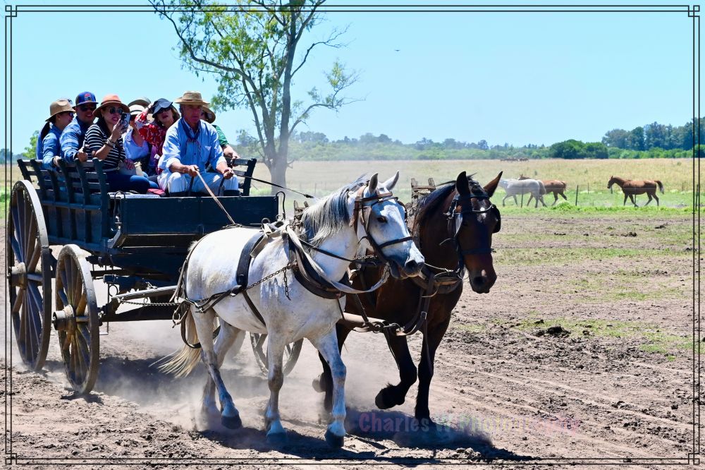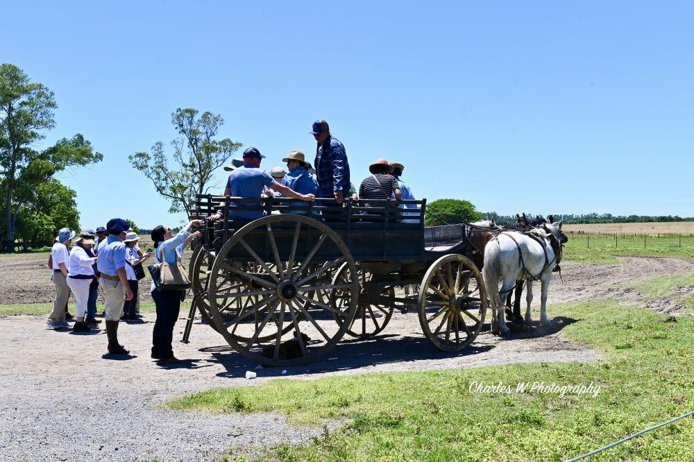 在午餐前,我们有充足的自由活动时间去探索这座历史悠久的牧场。、我们选择坐上古老的马车(carruaje),在导游的讲解下悠然穿梭于田间地头;当然也可以亲自体验骑马(cabalgata),感受马背上高乔人策马奔腾的自由。