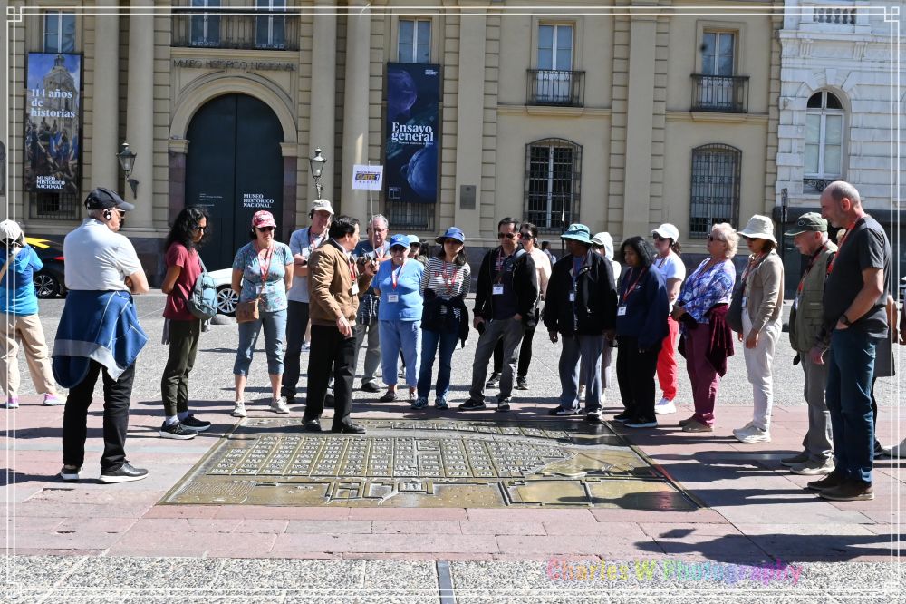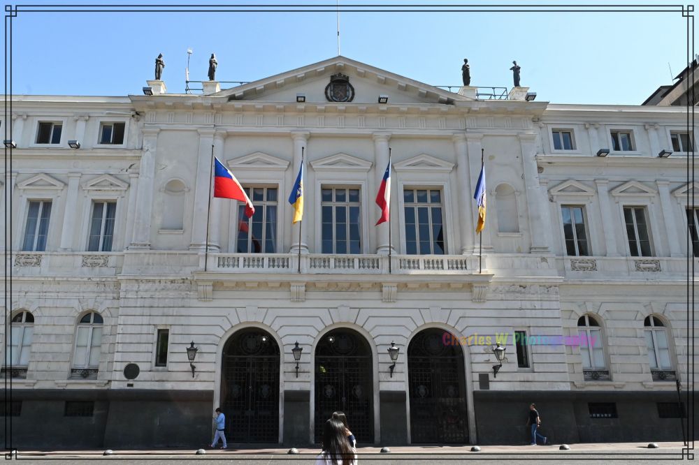 继续前行十多分钟左右就到了总统府——拉莫内达宫(Palacio de La Moneda)。这座新古典主义建筑建于1784-1805年,原是殖民时期的国家铸币厂(La Moneda)。“Moneda”在西班牙语中就是“硬币”的意思,这也是宫殿名称的由来。 智利独立后,宫殿后来被改建,并于19世纪初1922年起成为总统官邸。成为智利总统的办公地点和政府行政中心, 除了是总统府,它还包含内政部、总统府秘书处等重要的内阁部门。