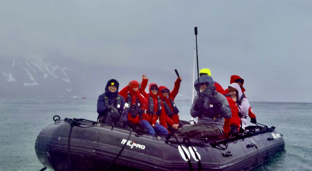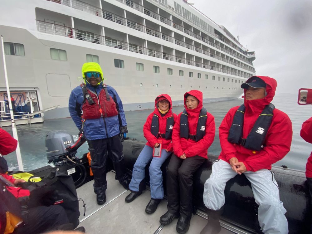 那一刻,忽然意识到,这场雨中的巡游,本身就是一次完整而难忘的无冕的“登陆”, 而在跨出冲锋舟返回游轮的那一刻,说实话,一只紧紧绷着的心终于放松了,说不紧张是在骗自己。