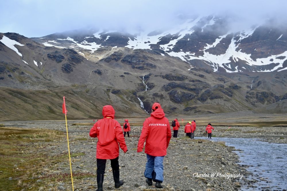 今日上午登陆目的是徒步(Hike) 到Shackleton Fall(沙克尔顿瀑布),我们要走的路就是沙克尔顿800英里奇迹的最后一程(见下示意图),我们今天反过来从Stromness捕鲸站走到沙克尔顿瀑布, 也算是“我吹过你吹的风,我走过你走的路”吧。据小婉说这个Hike一般游轮是不提供的,所以我们算是幸运, 我们能够怀着崇敬的心情走这条沙克尔顿走过的路,吹沙克尔顿吹过的风。