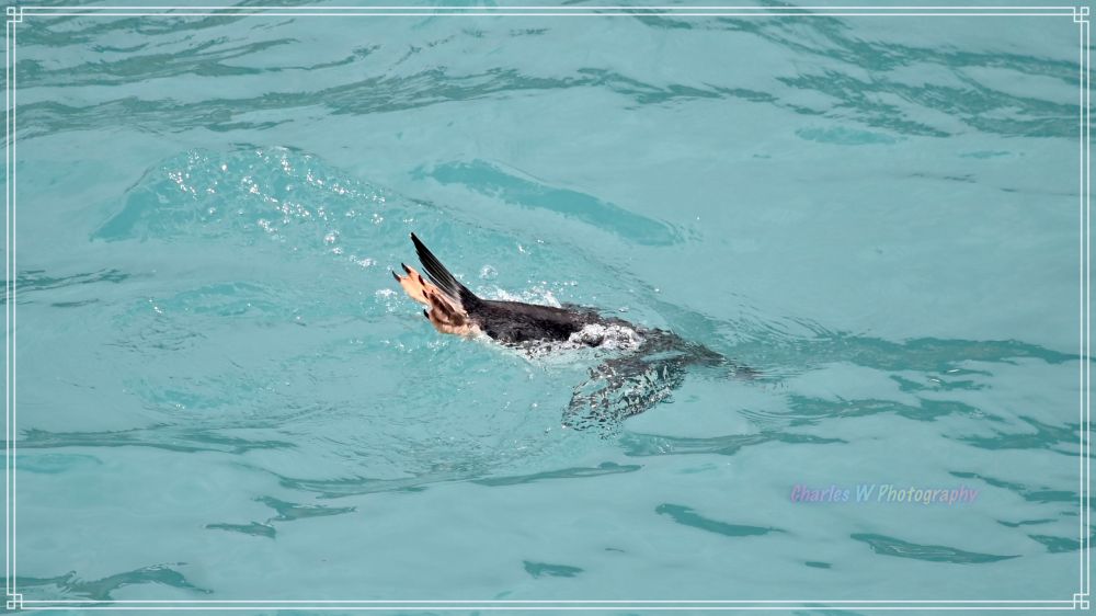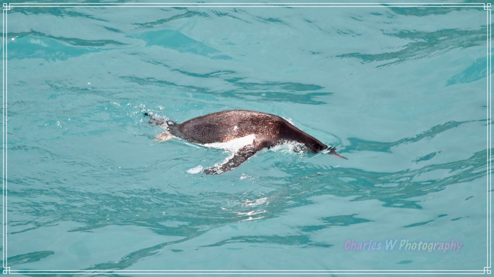 海面偶尔泛起涟漪,几只企鹅入水,动作简洁;岸上的企鹅只是看了一眼,又低头继续自己的事情。