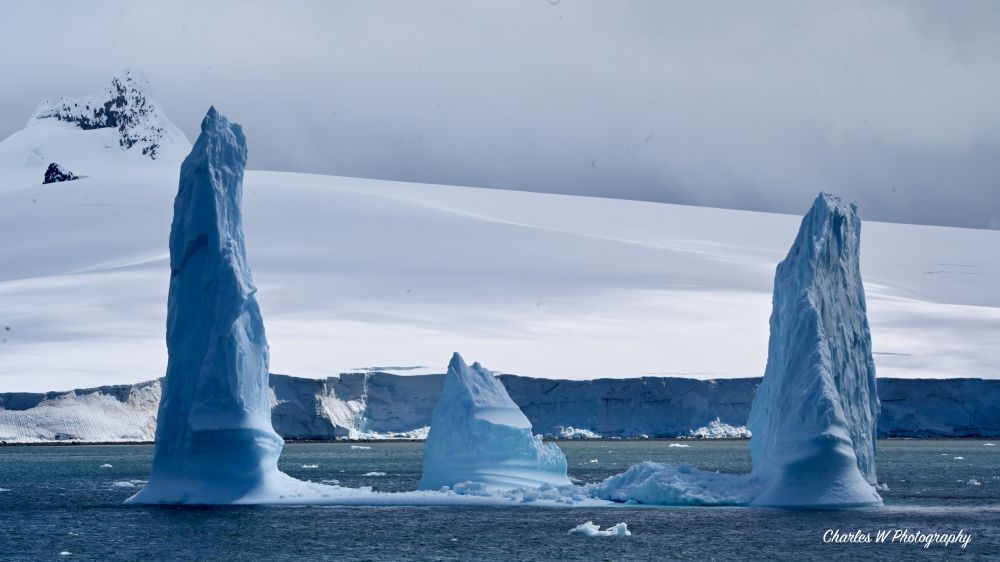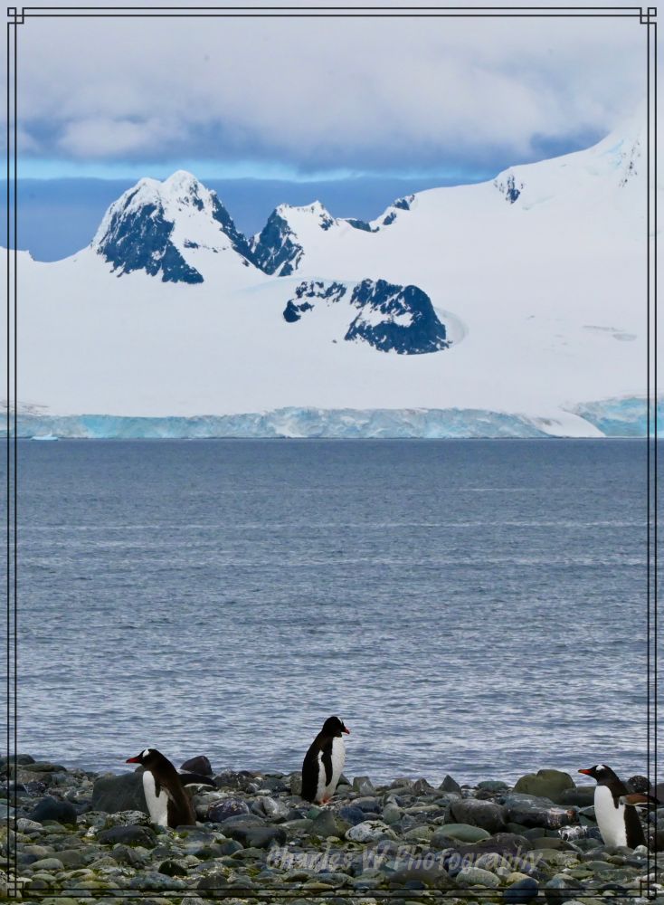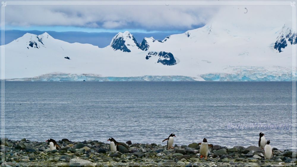 一侧是陡峭的山峦,另一侧是延伸入海的平坦砾石滩,站在砾石滩上,回望船只停泊的方向,远处是层层冰山和雪山,阳光洒在冰面上,反射出耀眼的白光。那一刻,会真正感受到“地球尽头”的壮丽与渺小。这里的色彩极度纯净——海水的深蓝、浮冰的晶莹剔透、积雪的惨白,以及金图企鹅尖嘴部那一抹跳跃的橘红。这种视觉上的高洁,让人感到一种前所未有的清新。此时,闭上眼睛,感觉到南极的静谧都是有层次的,远方冰川断裂时如闷雷般的轰鸣,企鹅们此起彼伏的鸣叫声,以及海浪拍打碎石滩的沙沙声,甚至能听见自己在寒冷空气中的呼吸声。