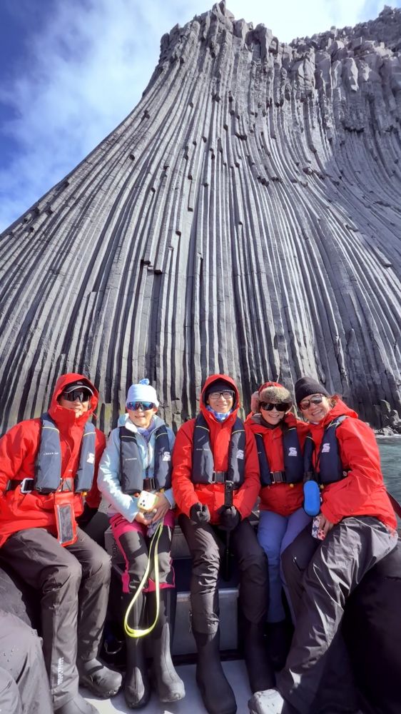 登陆时间约2小时(标准IAATO限制),结束后我们乘坐Zodiac。黑色火山沙滩在雪线下渐行渐远,仿佛一段被时间遗忘的海岸线。两个世纪前,这里曾回荡着捕鲸船,捕海豹船的锚链声;而今天,港湾只属于企鹅的脚步与海豹的鼾声,返回船上时,船员递上热巧克力,我们脸上都带着满足的笑容。