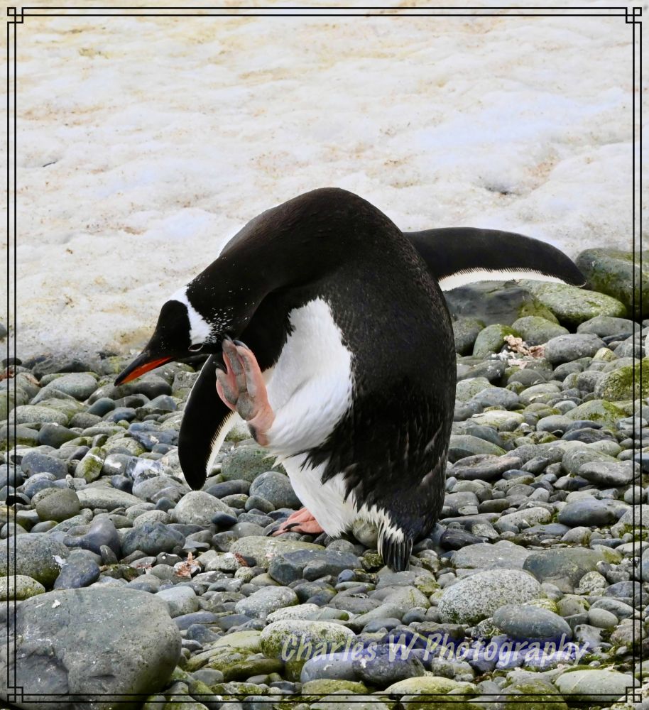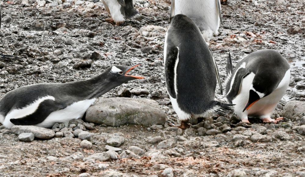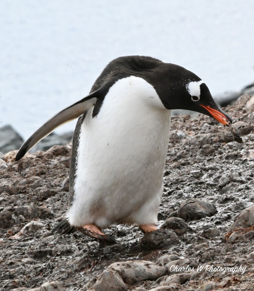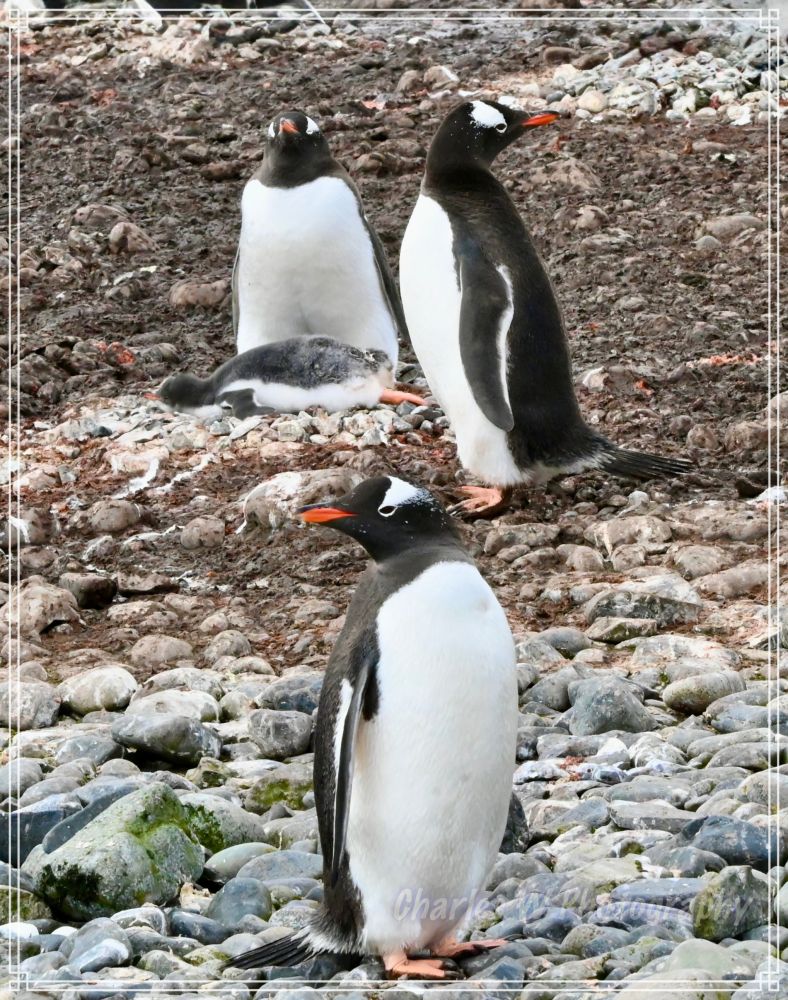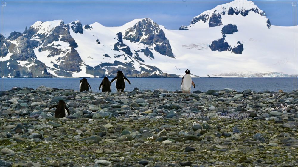 今天要见到的是金图企鹅(Gentoo Penguins),这是这次旅行看到的第五种企鹅 (之前见过跳岩企鹅,麦哲伦企鹅,王企鹅,帽带企鹅),金图企鹅又时会夹杂着几只帽带企鹅。