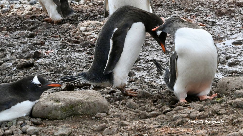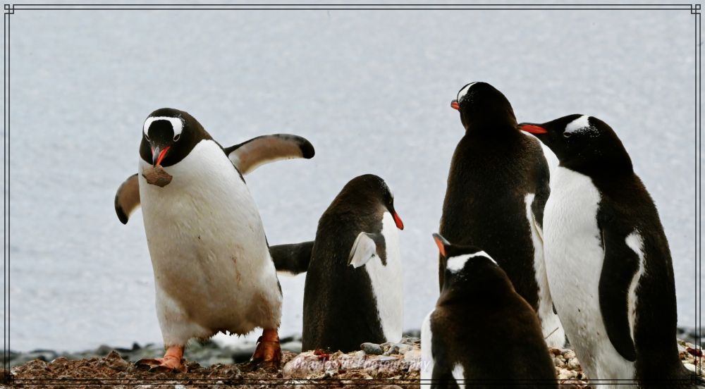 它们喜欢用小石子筑巢, 有自力更生从远处搬砖的的,也有耍小聪明的企鹅正忙着从邻居家“偷”石头,这种令人忍俊不禁的求偶与筑巢行为,在寂静的南极显得格外生动有趣。