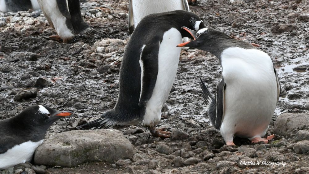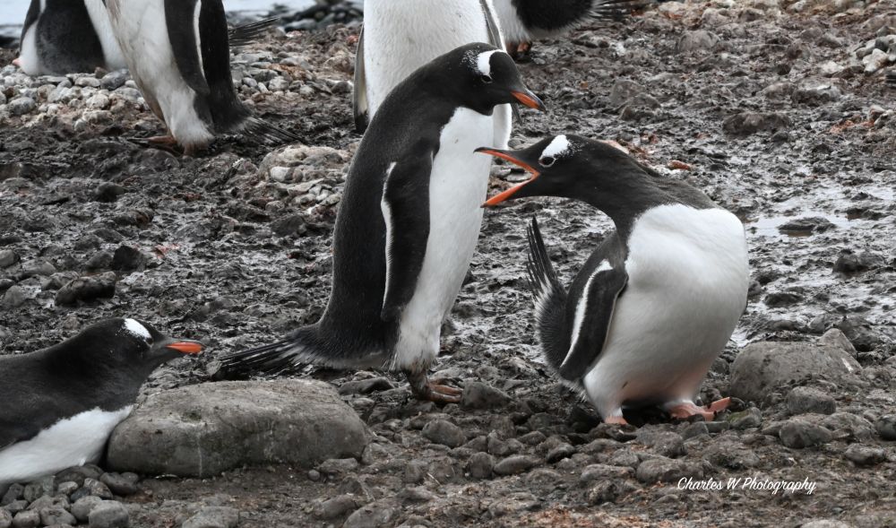 下面照片,拍到一个故事在南极的鹅卵石滩上,一对企鹅夫妇正进行一年一度的家庭会议, 结果吵了起来。