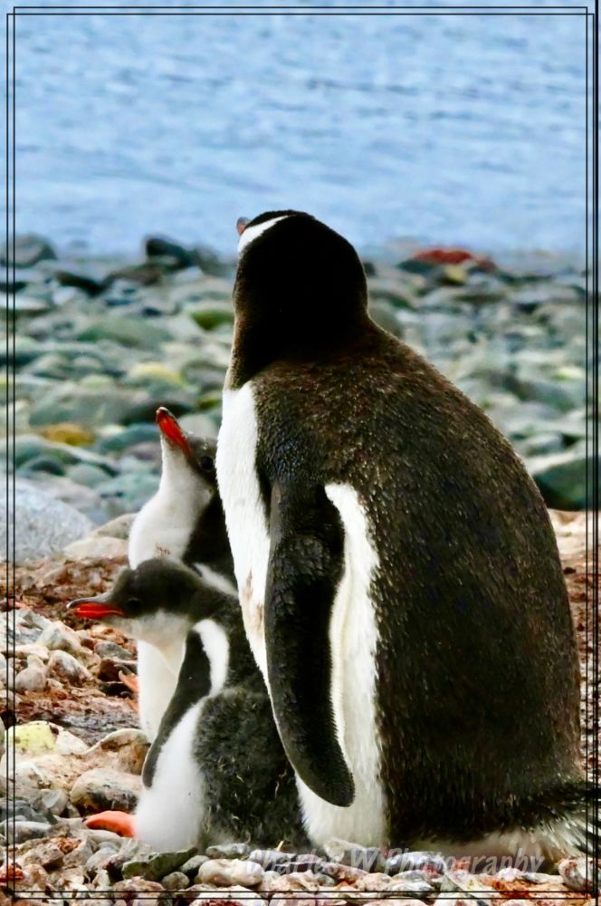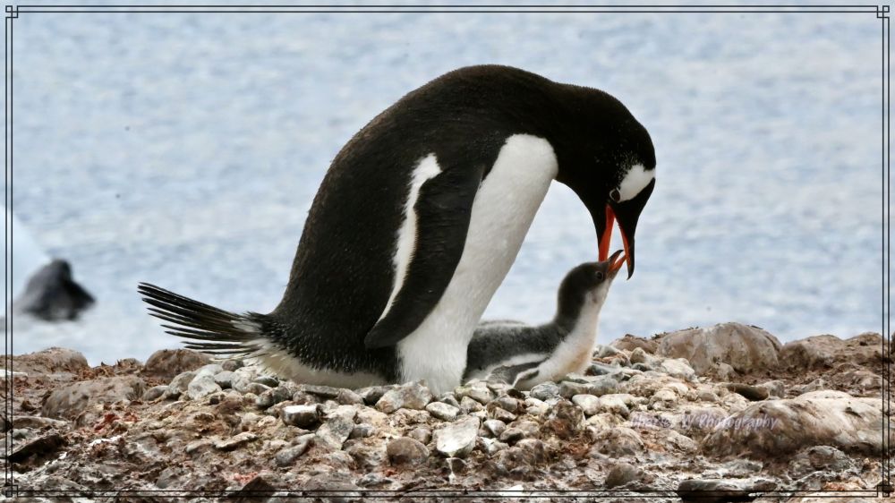 繁殖期的企鹅有的在孵蛋,有的在喂食刚破壳的绒毛宝宝,这里诸多企鹅在养育宝宝,父母轮流孵蛋、喂食,分工明确。相对稳定的一夫一妻制(但不是绝对终身),