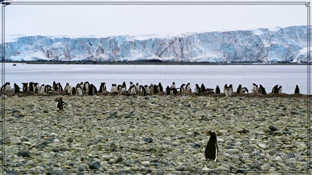 沿着指定的步道(IAATO严格规定只能走指定路径,以保护植被和巢穴),我们向内陆走去。海滩东侧有一个小融水池(melt-pool),周围是层层叠叠的企鹅“高速公路”——它们踩出的泥泞小径。远处,巨大的冰川前壁(glacier front)耸立,裂缝深蓝,偶尔传来冰崩(calving)的轰鸣声。