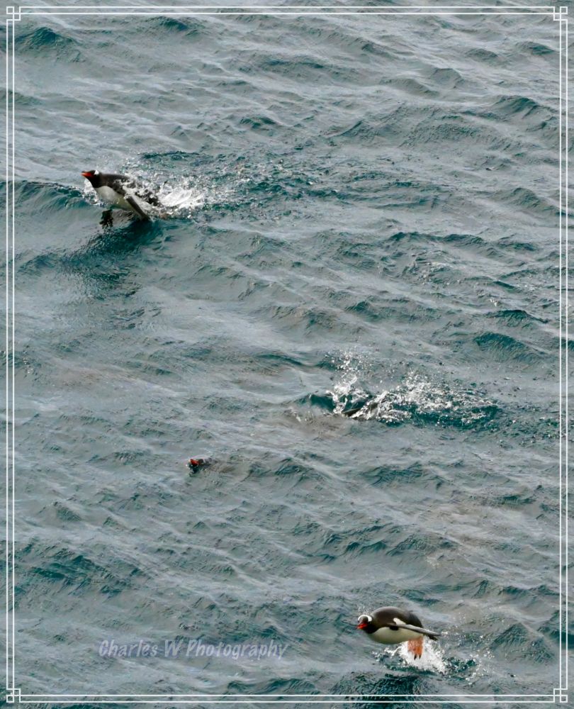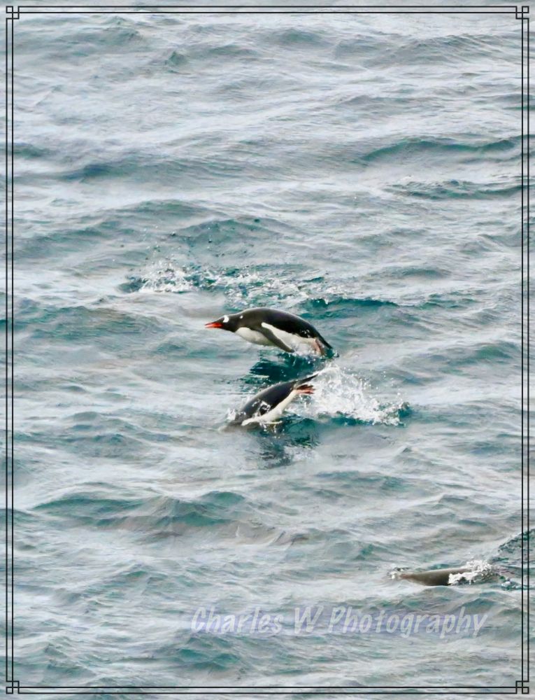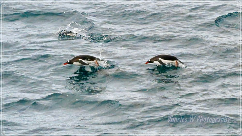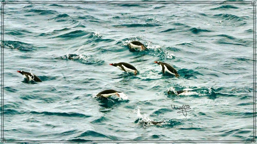 昨日(元旦)离开了象岛,沙克尔顿的故事暂时告一段落,历史慢慢退到身后,南极地理开始代替历史。醒来就是新年第二天(元月二日),早上我们到达了南极半岛附近的南设得兰群岛(South Shetland Islands),从船上看海里,一群群的企鹅在奋力游泳。 多数是金图企鹅,个别的是帽带企鹅。