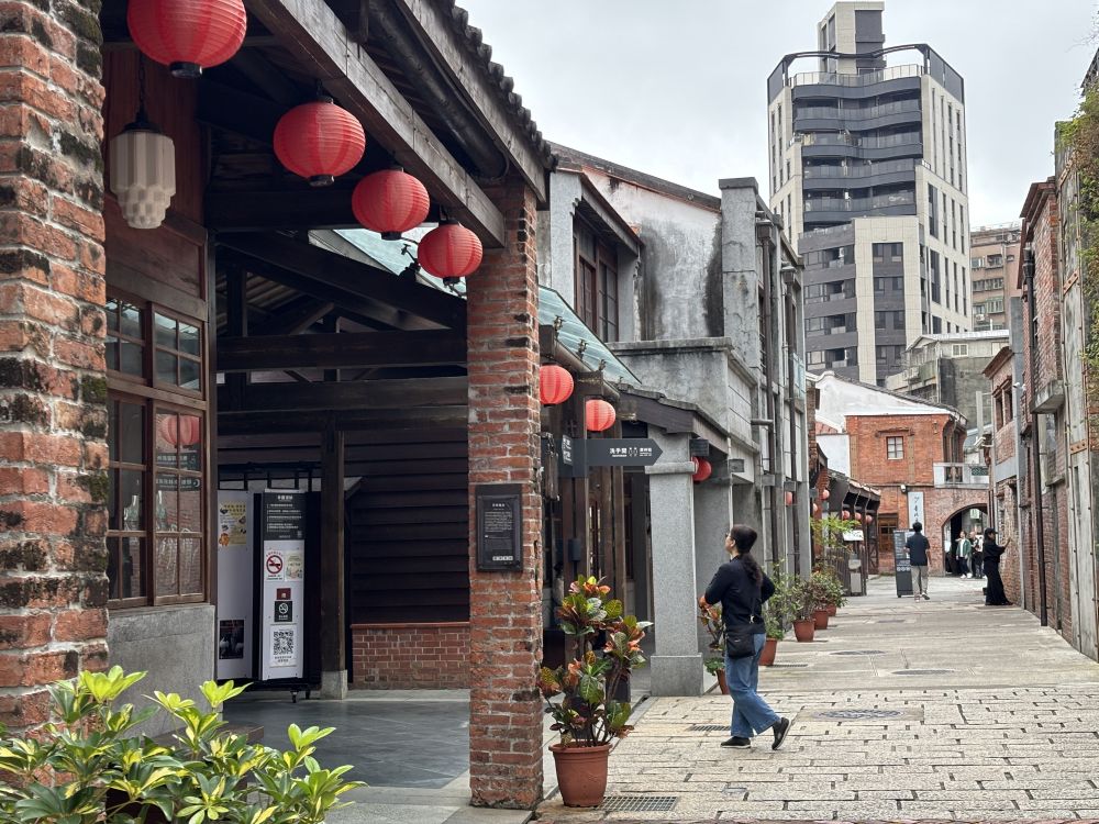 这里不像一般热闹的观光老街,少了商业包装,多了一种保留下来的安静。红砖墙、骑楼、狭长的街屋立面,挂着一盏一盏的大红灯笼,一路走过去,像在翻一册旧相簿。这里的建筑层层叠叠,既有清代街屋的影子,也有日治时期留下的痕迹,后来又承载了战后台北的庶民生活。岁月不是被抹平,而是被一层层留了下来。