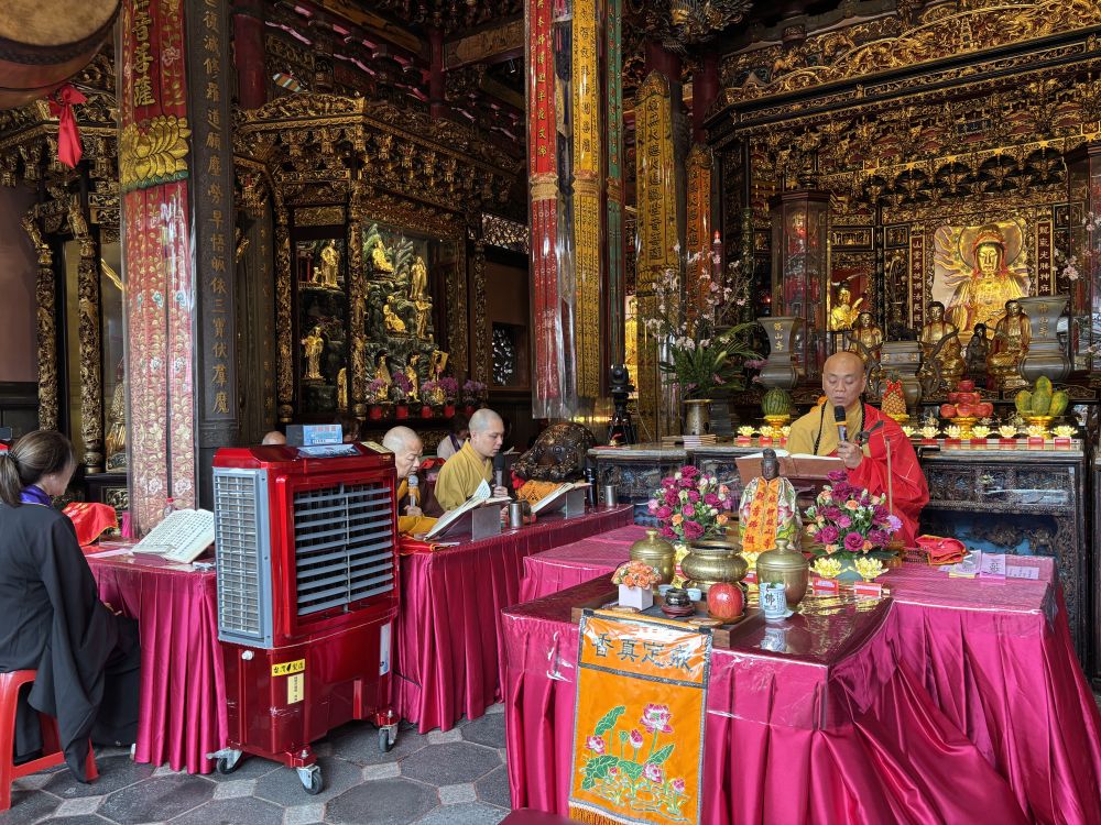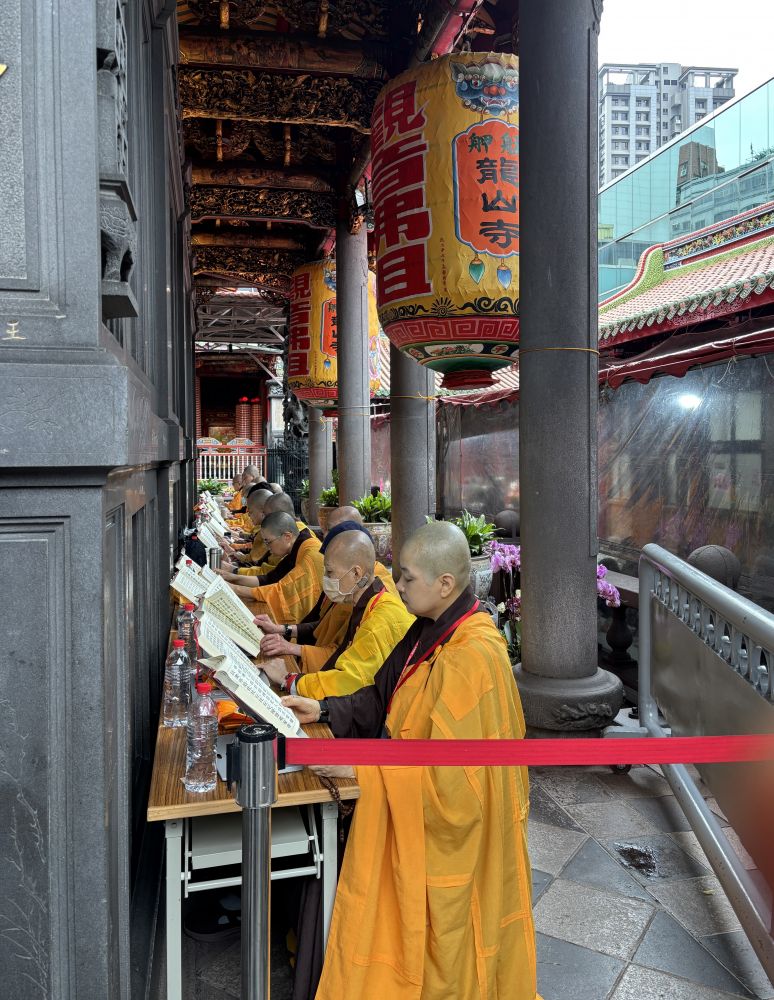 僧众与信众整齐诵念,声音低沉而绵长,在梁柱与屋檐之间回荡。你未必要完全听懂经文,但那种集体声浪本身就有一种力量——既安静,又震撼。人在其中,会不自觉放慢脚步,也放轻声音。旅途中原本有些浮躁的心绪,仿佛被那一阵阵经声轻轻压了下来。