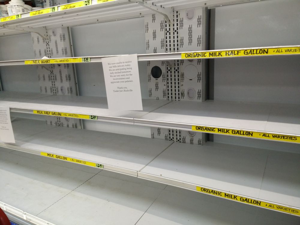 我们其实从上周三起已经开始陆陆续续地准备食物。但是到了周四晚上,发现忘了买水。为防停电停水,我周四晚上还是去了商店。于是看到以下情景: