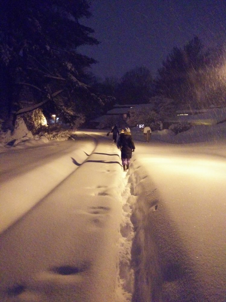 在暴风雪面前,吃货的脚步仍然是坚定的,不可动摇的!我们一条街上的邻居,住在最中间的一家做东,我们另外两家街两头的,都往他们家去行进。于是在深达75厘米的积雪中,我们自带雪铲,边走边挖,杀出了一条雪路,到邻居家去相聚。屋外狂风暴雪,屋内笑语连连。六个小朋友全部积极主动地围在一起学着包饺子,在成长为下一代吃货的康庄大道上努力前进。有这样的好邻居好朋友,我们还怕什么呢!