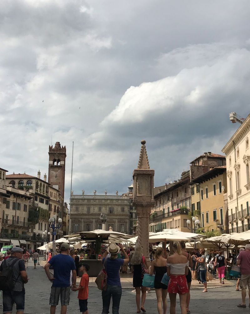 Verona虽然没有意大利别的大城市那么出名,却也是一个充满活力的小城。车子停在城外,小城四周都是古城墙。大部分的游人都经过大大的城门,进入Centro Storico历史中心,中间是个大广场。