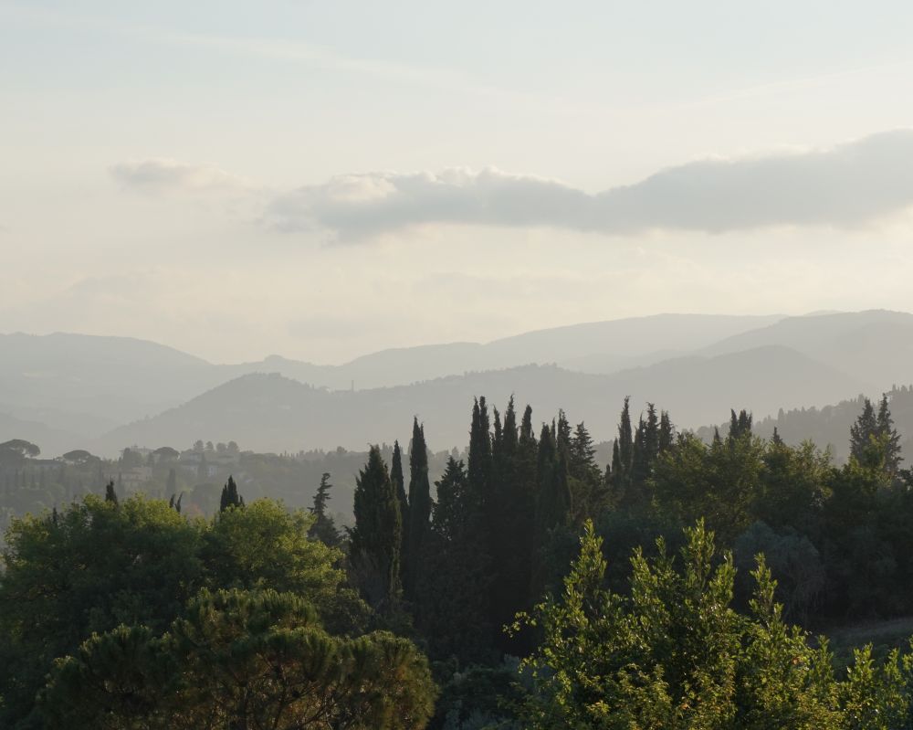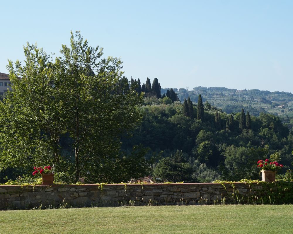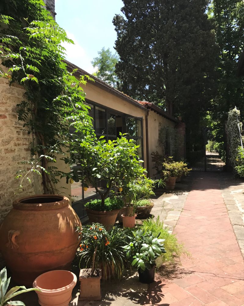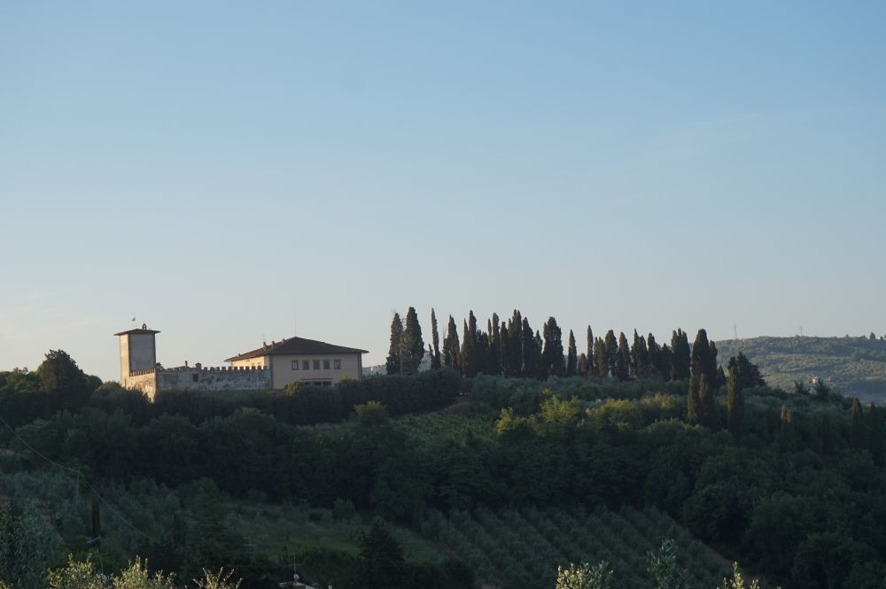 Florence是这次旅行中我最向往的目的地。没想到还没进Florence先生给我们订的住处已叫我们惊艳。弯弯曲曲的小路上只容一辆车通过,逐渐爬高的小山坡上似乎看不到头。峰回路转,转入一条树荫如盖的小路,尽头是个小停车场。停车场树木茂盛,知名不知名的花儿盛开,蝴蝶纷飞。
