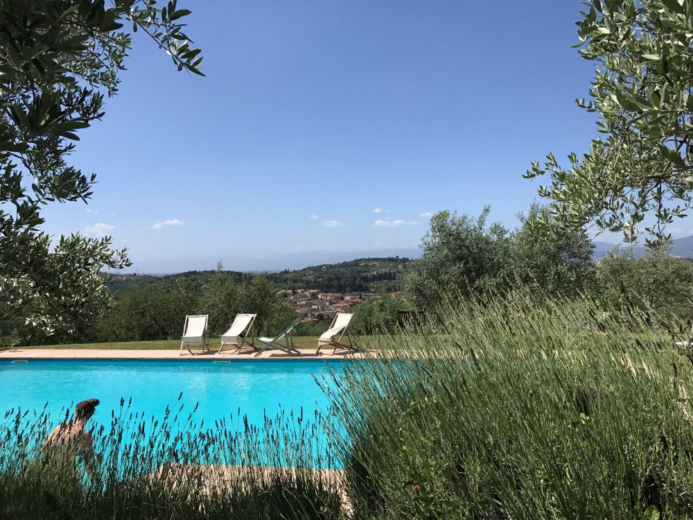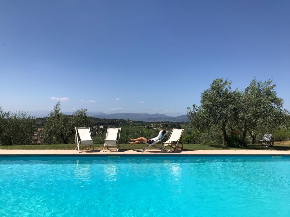 在城堡的另一半,游泳池在阳光下水光盈盈。坐在躺椅上享受着田园风光中暖暖的阳光,几乎忘了我们还要去Florence的那回事了。。。