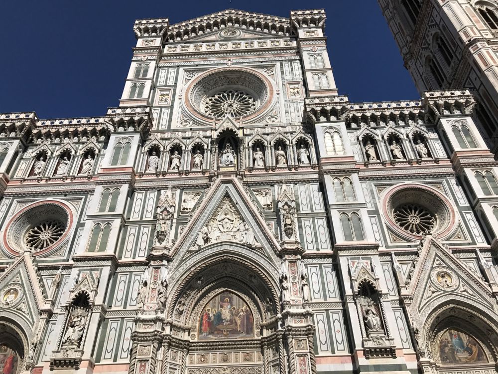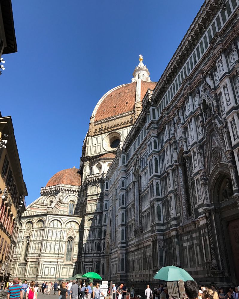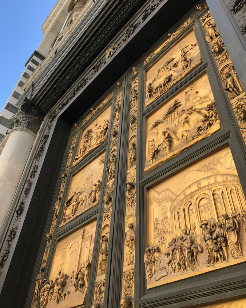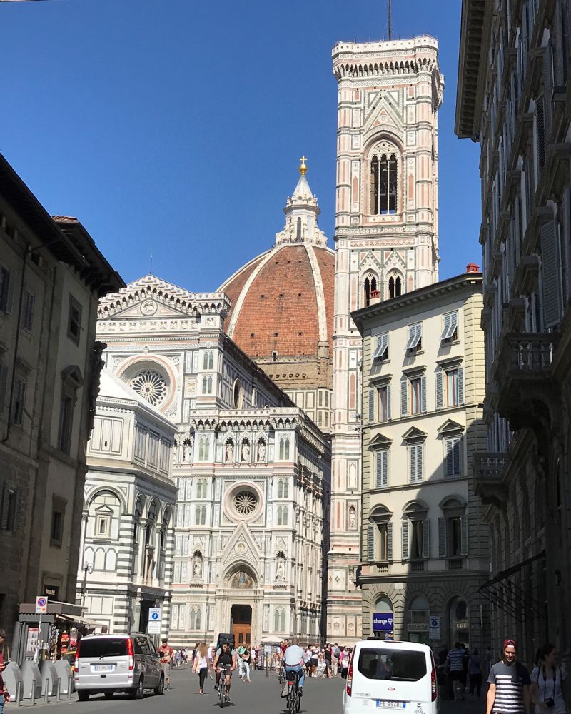 Florence非常适合步行,每个景点之间距离都不远, 最大的景点之一在Piazza del Duomo广场。在这里你能看到Cathedral of Santa Maria del Fiore圣母百花大教堂,The Baptistery of St. John 圣约翰洗礼堂和Giotto's Bell Tower乔托的钟楼。这三个景观是被列入联合国教科文组织的世界遗产佛罗伦斯历史中心的一部分,文艺复兴的开始和代表都在于此。每一个地方都可以看很久,有太多的细节,太多的历史,就不一一叙述了。
