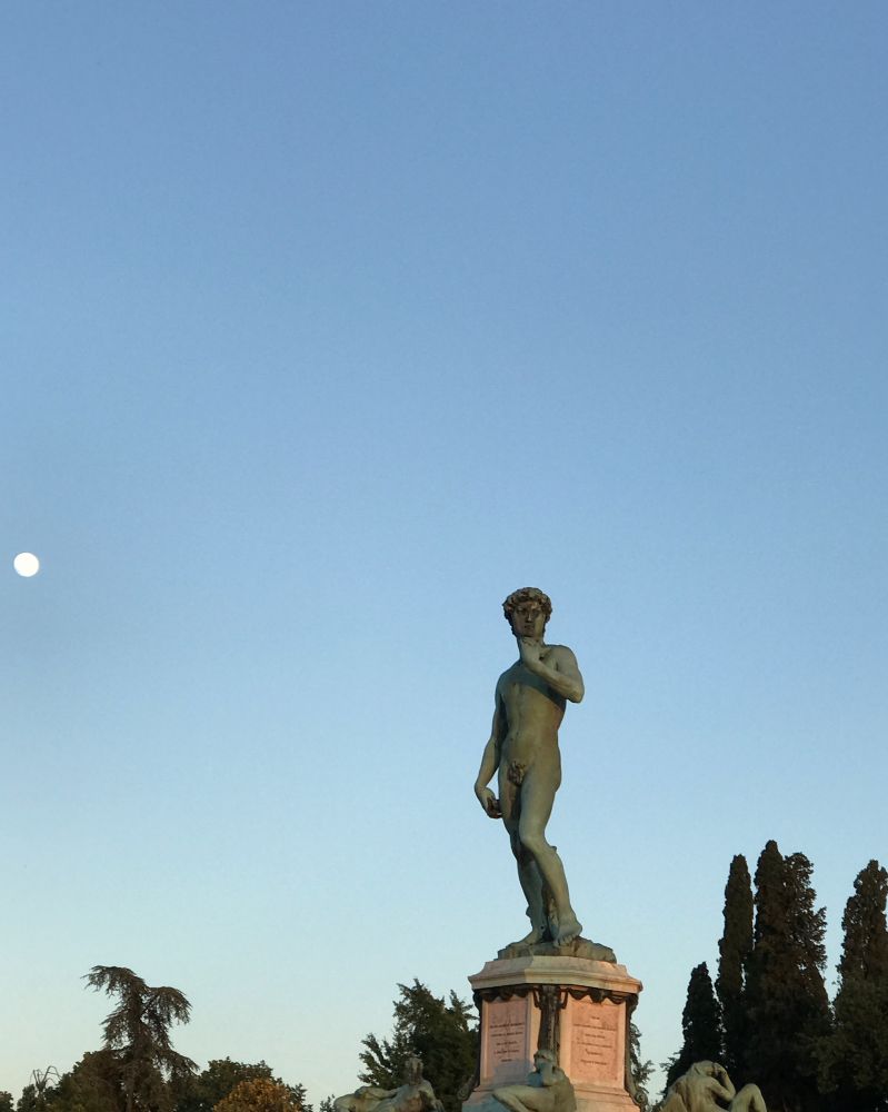 吃饱喝得,往米开朗琪罗广场走去。正好是月圆之夜,大王的雕像复制品立在广场中间,魅力无边。