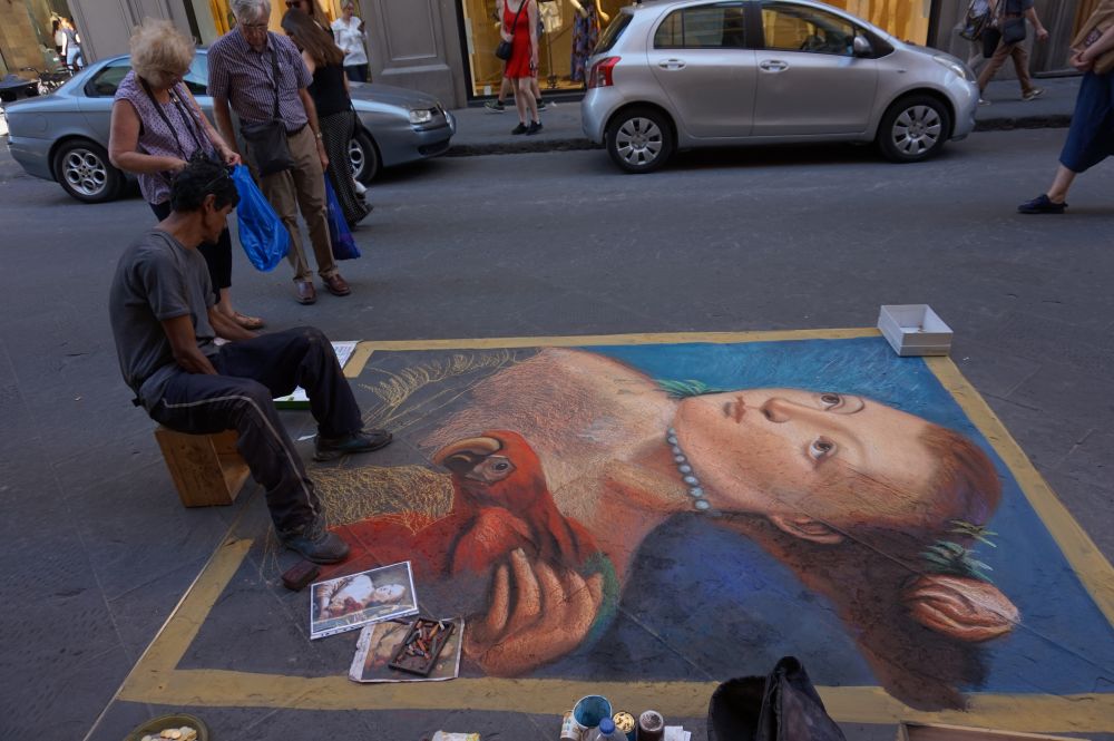 再次进入Florence中心,似乎有种很熟悉的感觉了。脚步不再匆忙,慢慢的徜徉在小巷里,看街边各种小店,卖纪念品的,卖花的,卖冰激凌的,卖纸制品的,卖艺术品的,还有街边的艺人。古老的民居也是非常耐看。