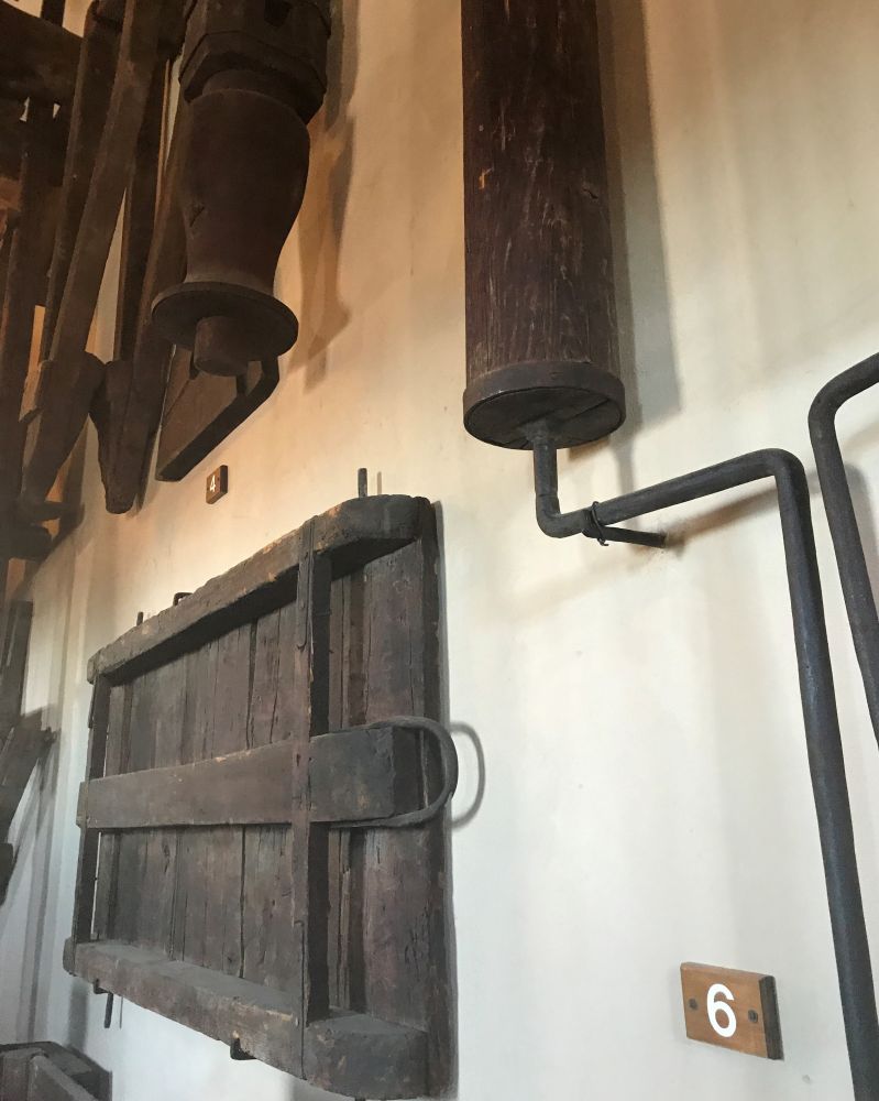 第一次进城就想去爬钟楼,可是看排队的人太多,这次又想去看看情况如何。哪知道参观钟楼是要提前买票的。正在懊恼的时候,来了个票贩子,说他有下一场的票,十分钟后就可以爬楼了。我果断付了现金, 跟着他在人群里乱串一通。他最后把我带到象是一个旅游团入口处,在那儿排队,他和管事的很熟的样子。钟楼是个细高的长方体,高近85米,长宽只有近15米,一共有414台阶, 分三层。在低层楼梯拐角处放着雕像,建塔时候所用的工具等等。在楼梯转角有各种形状的窗户,可以往外看。