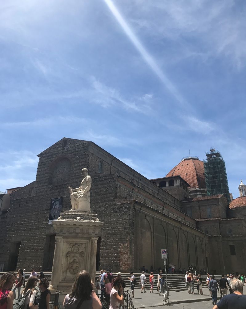 我还非常想看David雕像正版,到了 Galleria dell'Accademia, 看到买票的大长队沿着楼房排了有好几百号人。问了问管队的,照这个样子大概要排三四个小时。而那些事先买好了票的就不用排队了。非常遗憾,留个理由下次再来。