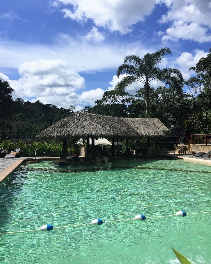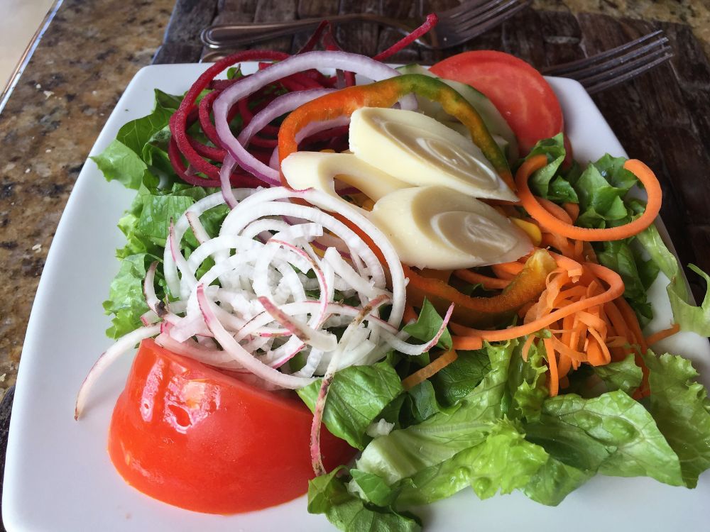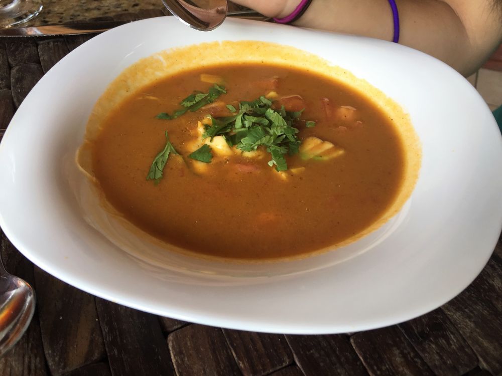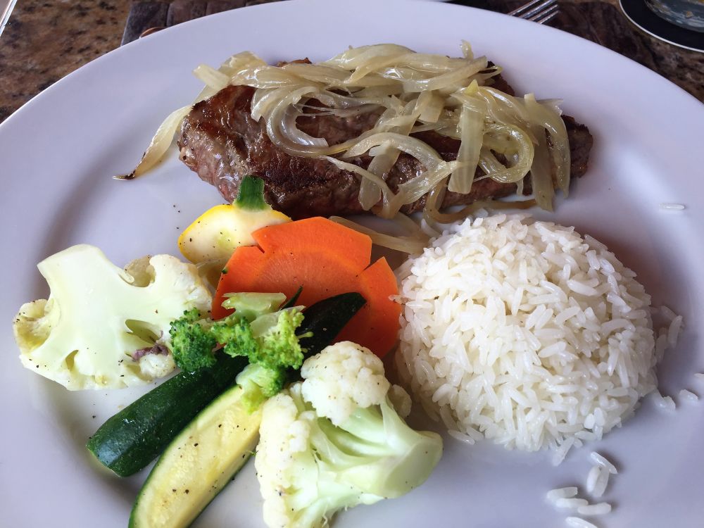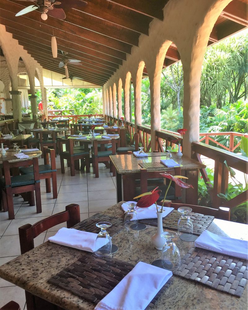 泡了温泉身心放松, 胃口也超好,中饭就在度假村里的饭店吃的。对于某些吃货来说,Costa Rica当地的食物可能没有那么种类繁多味道多样。这儿所有食物都崇尚新鲜加原汁原味。传统食物就是煎鱼,煎鸡肉或者牛肉配上新鲜蔬菜瓜果,加上米饭和豆子,非常健康。海鲜汤也很美味。各种热带水果汁加牛奶真是非常非常好喝。甜点较有名的是椰汁蛋挞,蛋奶糕等等。好在似乎每家饭店都有各种味道的Tabasco,对爱吃辣的是个不错的选择。