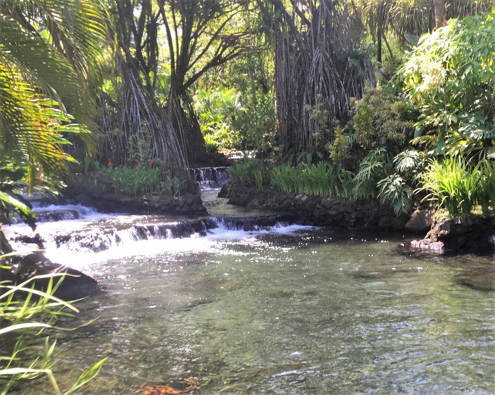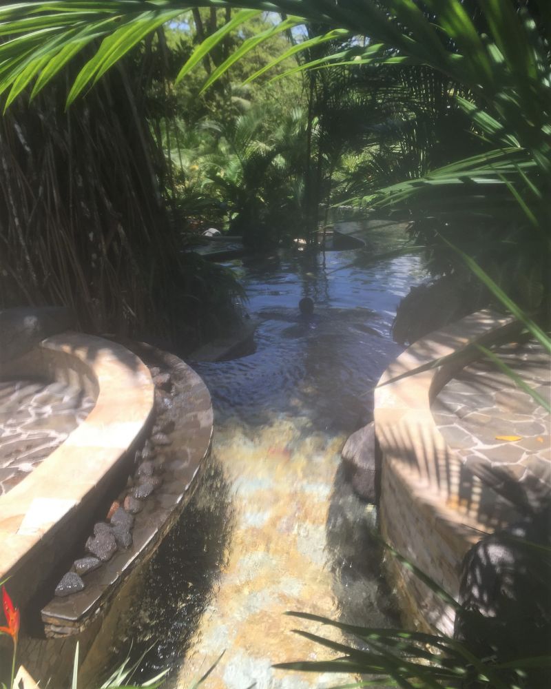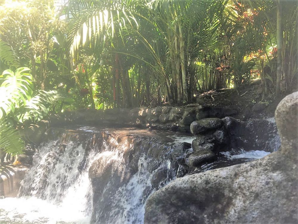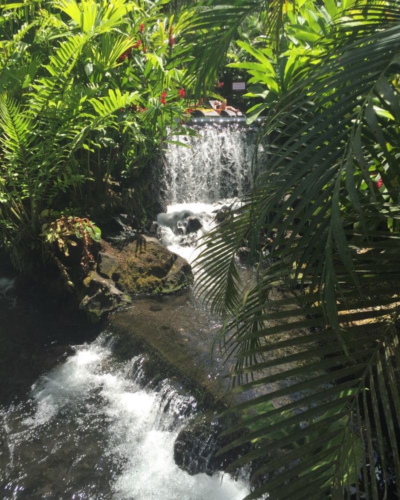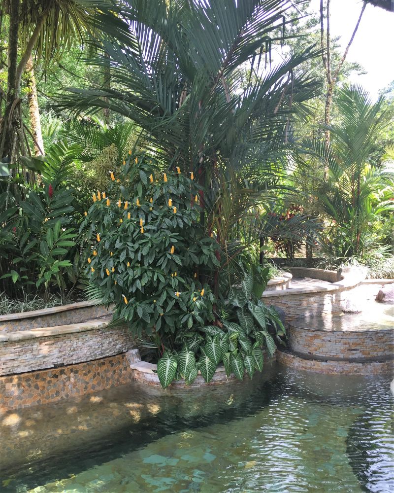 十几个大大小小的温泉在火山脚下的热带雨林里变成了瀑布,小溪和小湖。这儿的温泉水也是出奇的好。天然的温泉温度从77华氏度到122华氏度不等,各人可以各取所爱的温度地点享受自然。而我觉得最好之处就是温泉的硫磺含量极低,根本闻不到任何异味。在满天的高低树木植被五颜六色的花儿中,露出的温泉水池安静美丽,似乎在邀请每个人去享受其中。