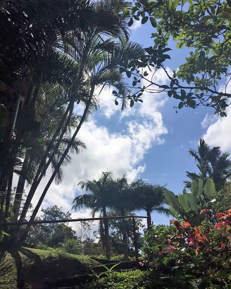 停好了车,回到温馨的小旅馆。一进门就是一大坨大香蕉挂在檐下,客人们可以随意拿取。旅馆坐落在高高的山头,后边的平台四周镶着玻璃。站在平台上,疾风拂面,林涛阵阵。一眼望去,深入云端的树林望不到头。时而雄鹰飞起,冲入云端,给人一种意气风发的感觉。